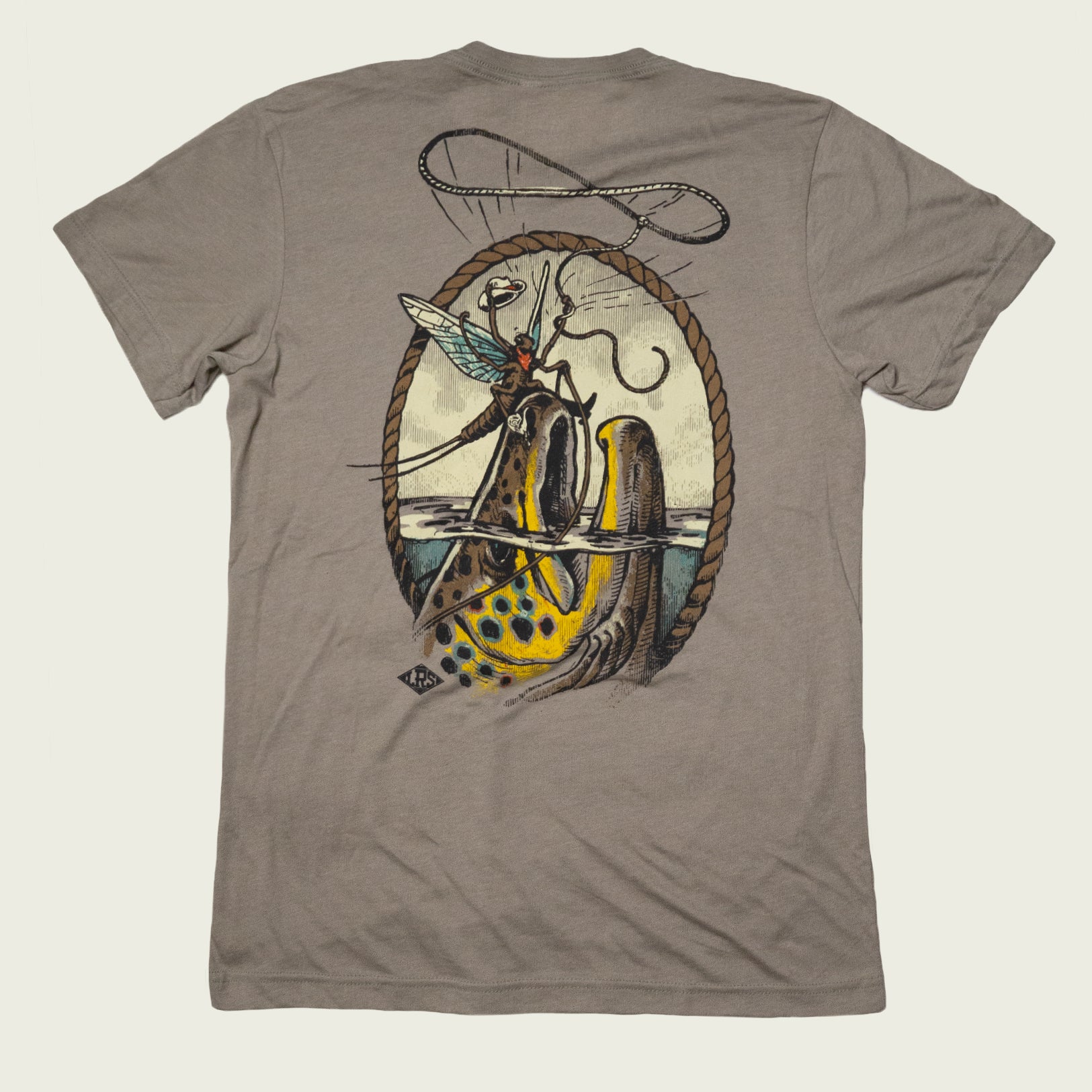 The Mayfly Rodeo! Maybe it’s a metaphor for making the best of a bad situation, or conquering your fears. Or maybe it’s just a bug who’s down for a fun ride. Either way, we think it makes for a doozie of a shirt.