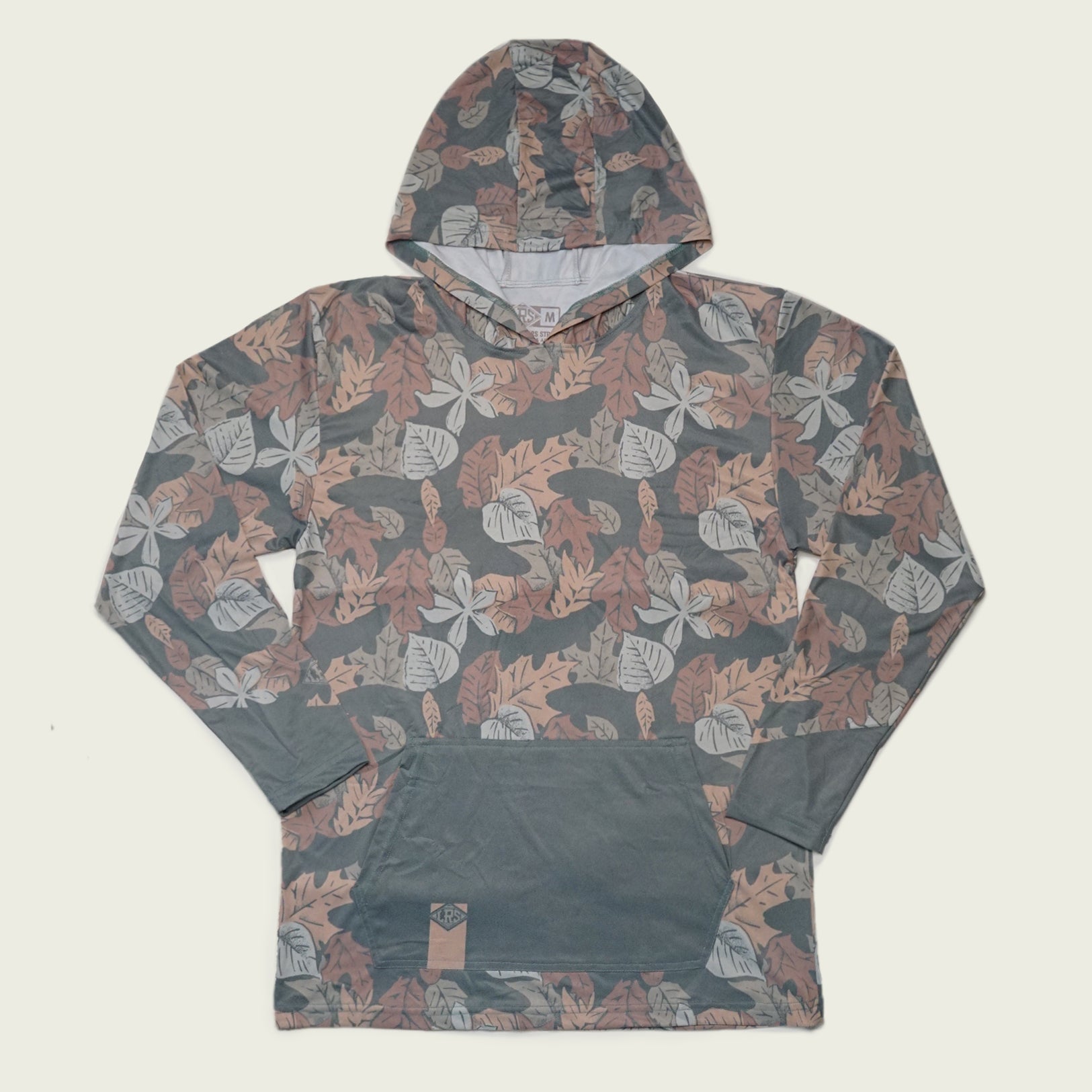 Spotting fish can really be a game of noticing the subtlest of shadows moving amongst changing reflections, deceiving rocks and of course floating leaves. The Trout Leaf pattern emulates those slight but exciting shadows with fishy silhouettes cleverly woven in among Oak, Maple and other various leaves. Made from a lightweight breathable, extremely soft polyester/ spandex fabric, this hoodie keeps you blocked from the sun without retaining any heat.