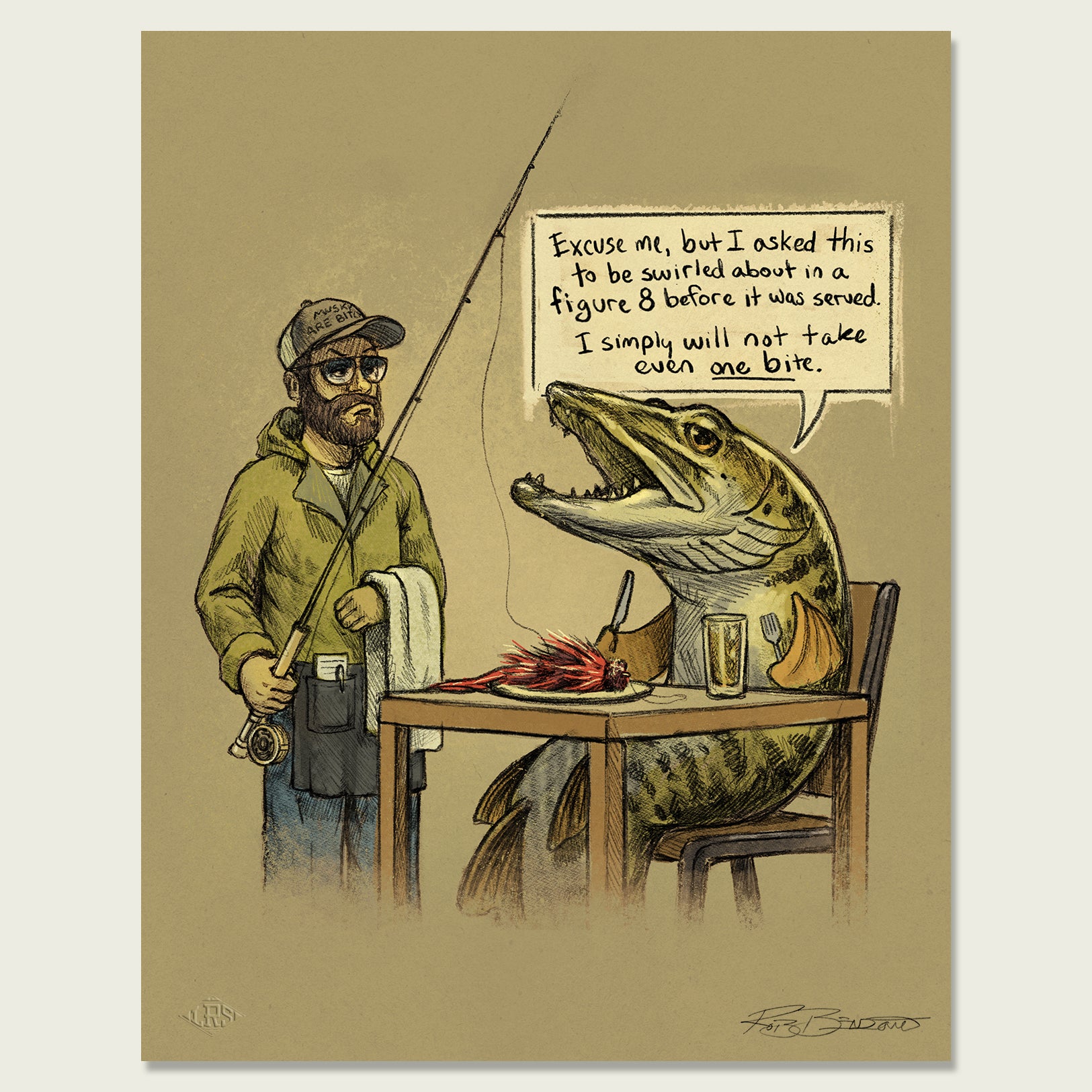 Musky, they can really test your patience at times. Let this print bring a little humor into your Musky chasing endeavors.